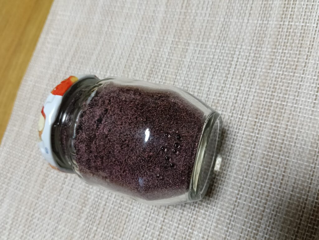 漬け込んだ後の赤しその一部は、干してからミルサーで細かくして、赤しそのふりかけ、何年も前の離乳食の空き瓶がありそれに入れました!にしています。これがまた、ごはんにぴったり。