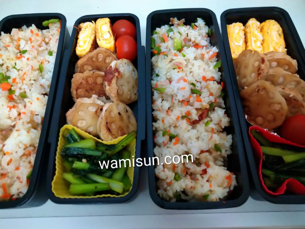 そんな今日のお弁当は、久しぶりに「レンコンとりつくねはさみ焼き」をメインにしてみました。